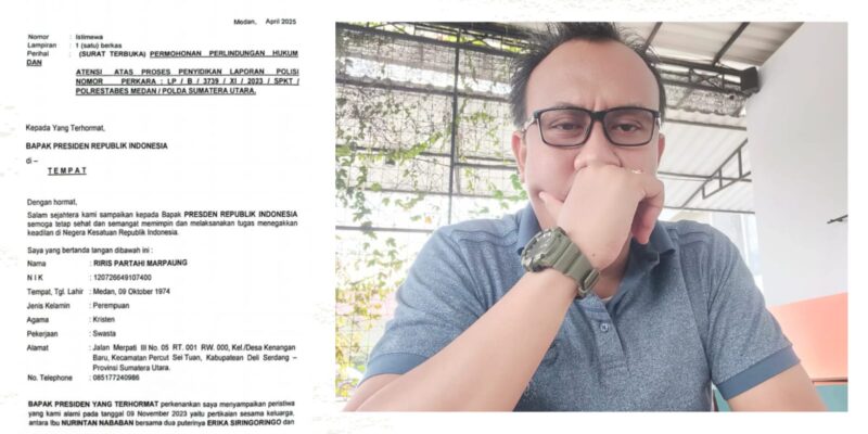 Sumatra Utara,- Dua warga Medan, Doris Fenita br Marpaung dan Riris Partahi br Marpaung melayangkan surat terbuka kepada Presiden Republik Indonesia ,kamis 17 April 2025 .