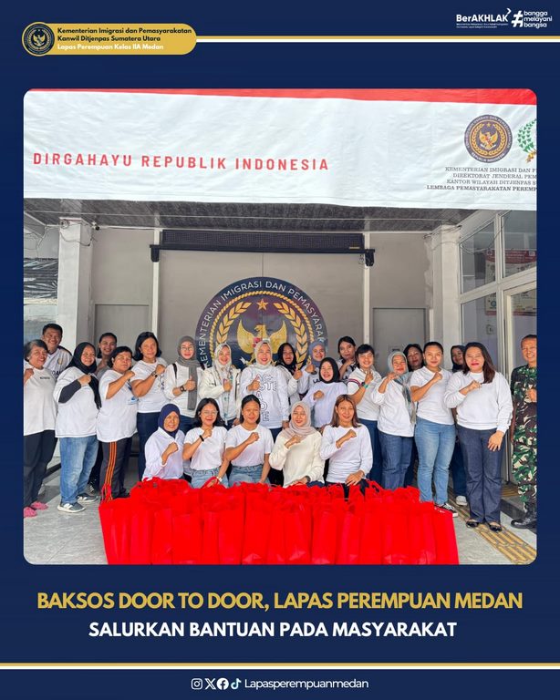 Medan — Dalam Rangka HUT Kemerdekaan RI Ke-80, Lapas Perempuan Kelas IIA Medan melaksanakan kegiatan Bakti Sosial sebagai bentuk kepedulian sosial dan komitmen untuk berkontribusi positif bagi masyarakat, Jumat (15/08).