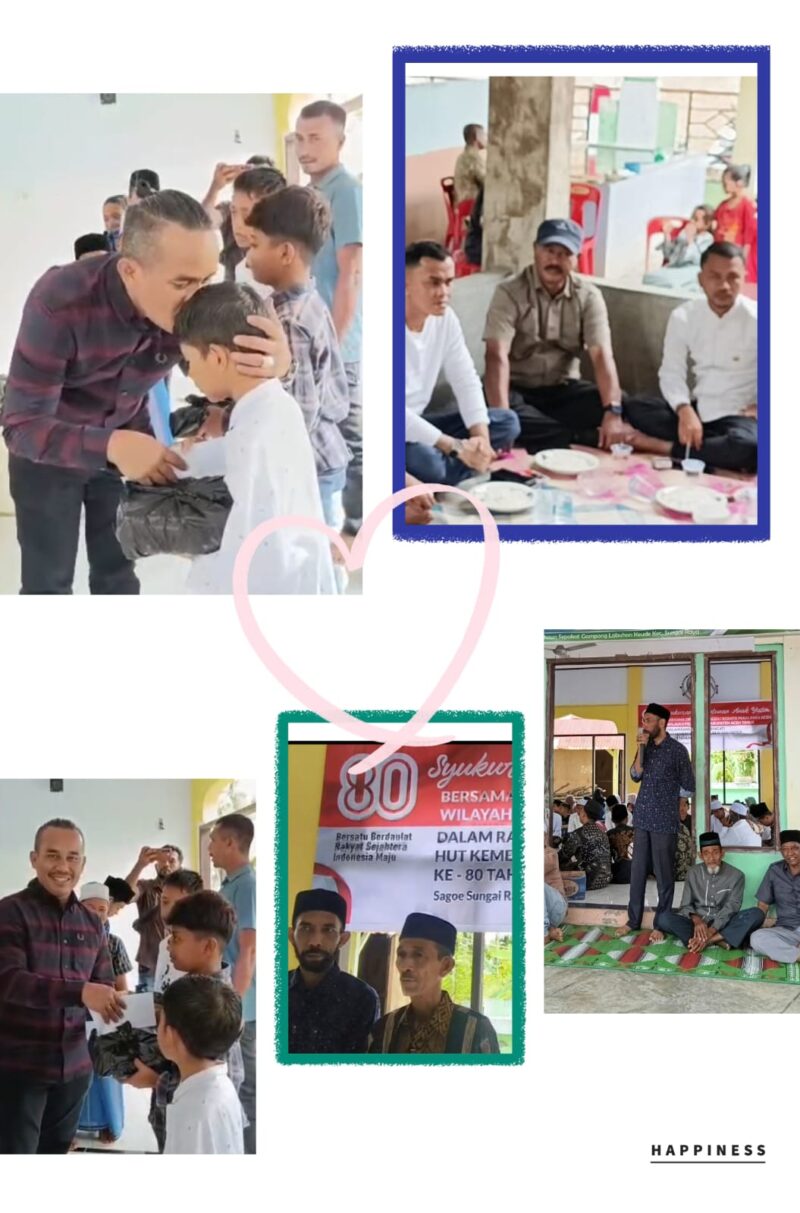 ” Alhamdulillah ada sekitar 80an anak yatim piatu dari desa ini yang kami berikan santunan, bertepatan dengan 80 tahun kemerdekaan Republik Indonesia,” ungkapnya.