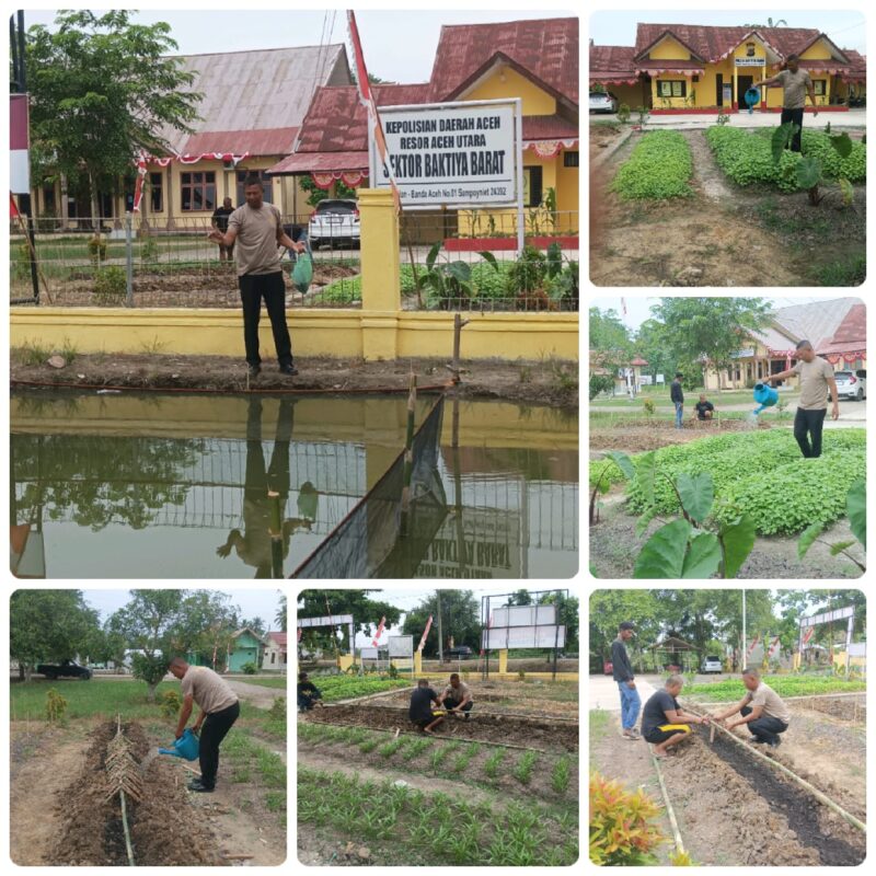 Program ini mencakup budidaya tanaman, peternakan, dan perikanan yang berlokasi di lingkungan Markas Kepolisian Sektor (Mapolsek) Baktiya Barat, Desa Singgah Mata, Kecamatan Baktiya Barat. Kegiatan ini dipimpin langsung oleh Kapolsek Baktiya Barat, IPTU Feri Suyatna, S A P bersama personel Polsek Baktiya Barat, Kamis 21/08/2025