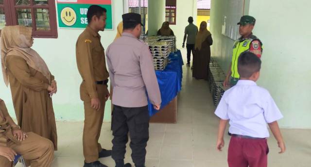 ACEH TIMUR – Personel Polsek Peudawa, Polres Aceh Timur, Polda Aceh melakukan monitoring dan pengawalan terhadap pendistribusian Program Makan Bergizi Gratis (MBG) yang disalurkan oleh Badan Gizi Nasional (BGN), Senin, (25/08/2025).
