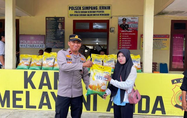 ACEH TIMUR – Sebanyak empat ton beras Stabilisasi Pasokan dan Harga Pangan (SPHP) habis terjual hanya dalam hitungan jam saat Gerakan Pangan Murah (GPM) di Polsek Simpang Jernih, Polres Aceh Timur, Polda Aceh, Senin, (15/09/2025). Beras mulai dijual pukul 08.00 WIB, dalam waktu kurang dari tiga jam, beras yang dijual seharga Rp 60 ribu per sak kemasan lima kilogram habis terjual.