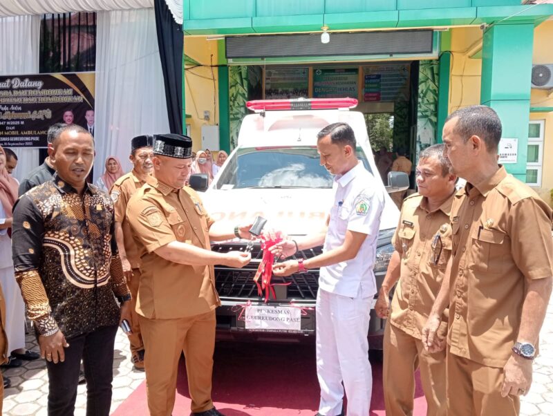 Aceh Utara – Bupati Aceh Utara H Ismail A Jalil, SE, MM, menyerahkan satu unit mobil sebagai armada ambulance untuk Puskesmas Geureudong Pase, Selasa, 16 September 2025.