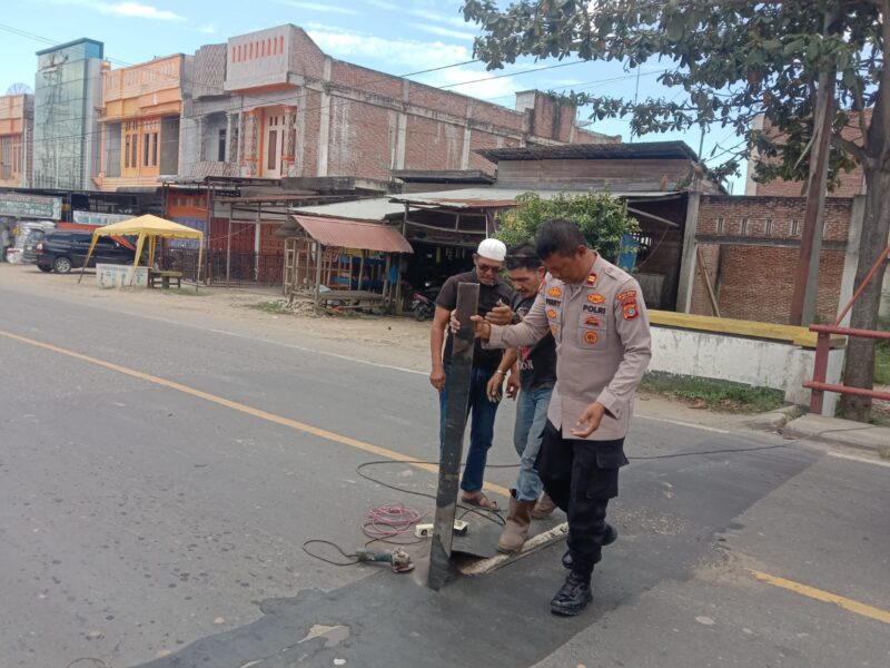 Gerak Cepat Kapolsek Baktiya Barat IPTU Feri Suyatna SAP Perbaiki Plat Besi Jembatan Yang Rusak
