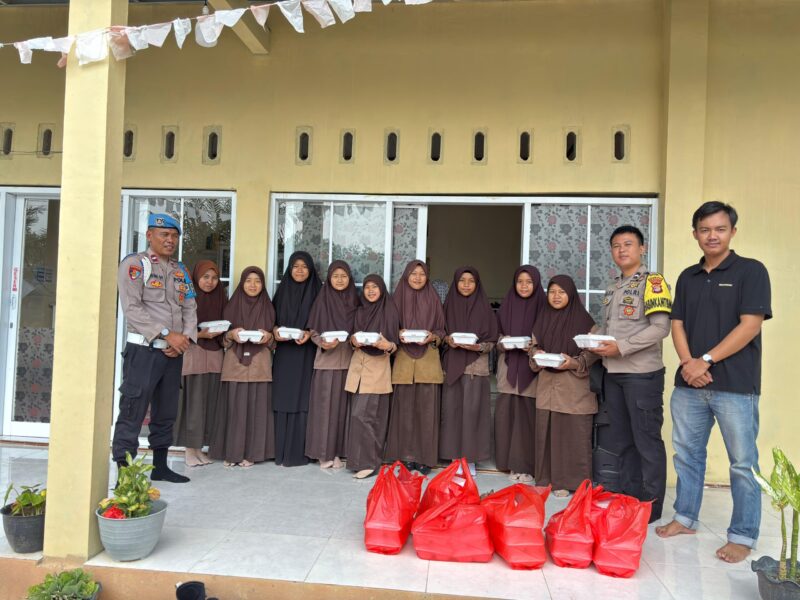 *Tulang Bawang Barat*—–Dalam semangat berbagi di hari Jumat yang penuh berkah, Personil Polsek Lambu Kibang, Polres Tulang Bawang Barat Polda Lampung membagikan nasi kotak kepada Santri Pondok Pesantren Nurul Kirom Tiyuh Gunung Sari Jaya Kec. Lambu Kibang Kab.Tubaba, Jumat (26/09/2025). Pagi