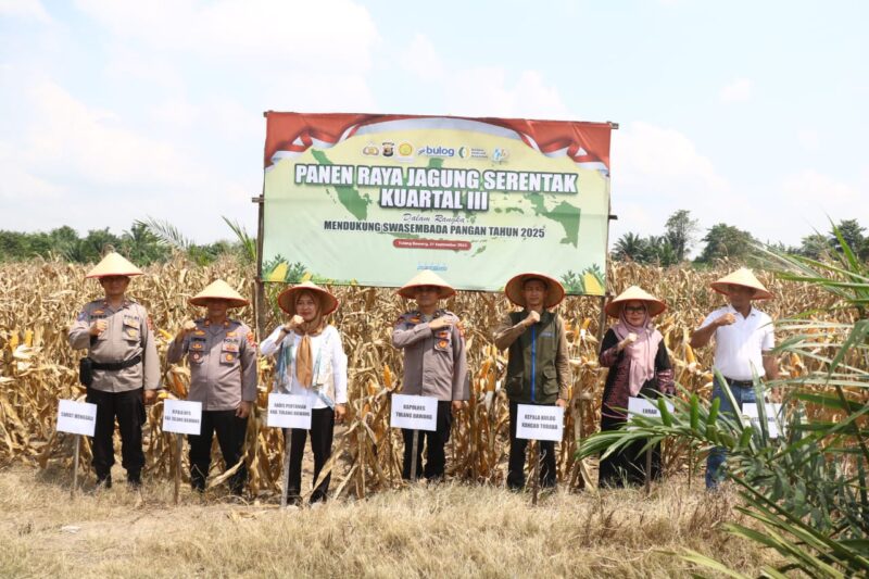*Tulang Bawang* – Polres Tulang Bawang bersama unsur Forkopimda melaksanakan kegiatan Panen Raya Serentak Jagung Kuartal III yang digelar pada Sabtu, (27/09/2025), di lahan ketahanan pangan Kelurahan Menggala Kota, Kecamatan Menggala, Kabupaten Tulang Bawang.