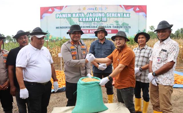 ACEH TIMUR – Polres Aceh Timur, Polda Aceh melaksanakan Panen Raya Jagung Kuartal III Tahun 2025 di Dusun Alue Meunuang, Desa Pante Rambong, Kecamatan Pantee Bidari, Kabupaten Aceh Timur, pada hari Sabtu, (27/09/2025). Panen raya jagung berlangsung di lahan milik Abdul Wahab seluas 6 (enam) hektare.