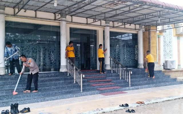 Kegiatan yang dimulai setelah pelaksanaan apel pagi ini dipimpin langsung oleh Kapolsek Peureulak AKP Muslim Siregar, S.H. diikuti oleh seluruh personel dengan penuh semangat. Dengan bergotong royong, para personel membersihkan halaman masjid hingga membersihkan kamar mandi serta tempat wudhu yang menjadi fasilitas penting bagi jamaah.
