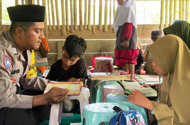ACEH TIMUR – Sosok anggota Polri yang satu ini patut diacungi jempol, Bhabinkamtibmas Polsek Simpang Jernih, Polres Aceh Timur, Polda Aceh, Bripka Saifullah juga aktif menjadi guru ngaji bagi anak-anak di Desa Simpang Jernih.