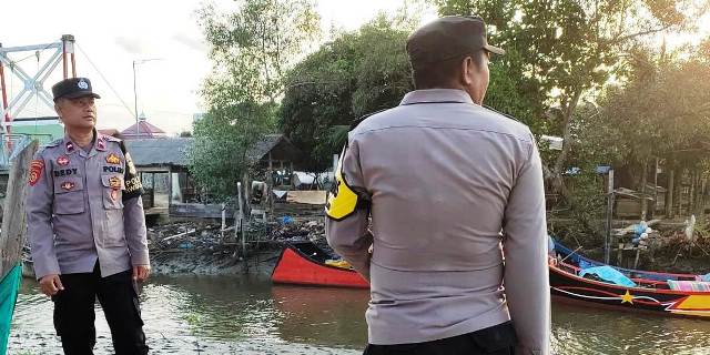 ACEH TIMUR – Guna mencegah masuknya orang/barang secara illegal melalui jalur perairan, persone Polsek Nurussalam, Polres Aceh Timur, Polda Aceh, Aiptu Dedi Sahputra bersama Bripka Aidil melaksanakan giat patroli di Gampong Kuala Bagok yang terdapat pelabuhan nelayan tradisional. Senin, (06/10/2025) sore.