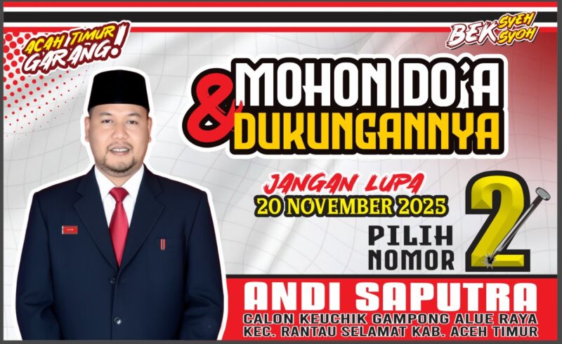 “Kami dari kaum milenial berkomitmen untuk memenangkan Geuchik Andi Calon geuchik nomor 2, karena saat ini Alue raya butuh sosok pemimpin yang benar benar dekat dengan rakyat dan bisa membawa segala bentuk pemba ngunan baik dari kabupaten maupun propinsi nantinya”, tutur salah satunya perwakilan kepemudaan kepada media tribunpasee.com Rabu (12/11/2025).