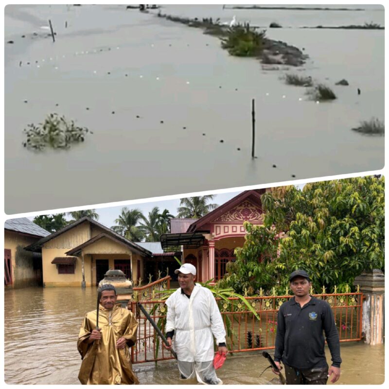 Puluhan Rumah Dan Tambak Warga Di Jambo Aye Utara terendam Banjir, Anggota DPRK Aceh Utara (Toke Dun) Sigap Terjun Bersama Warga