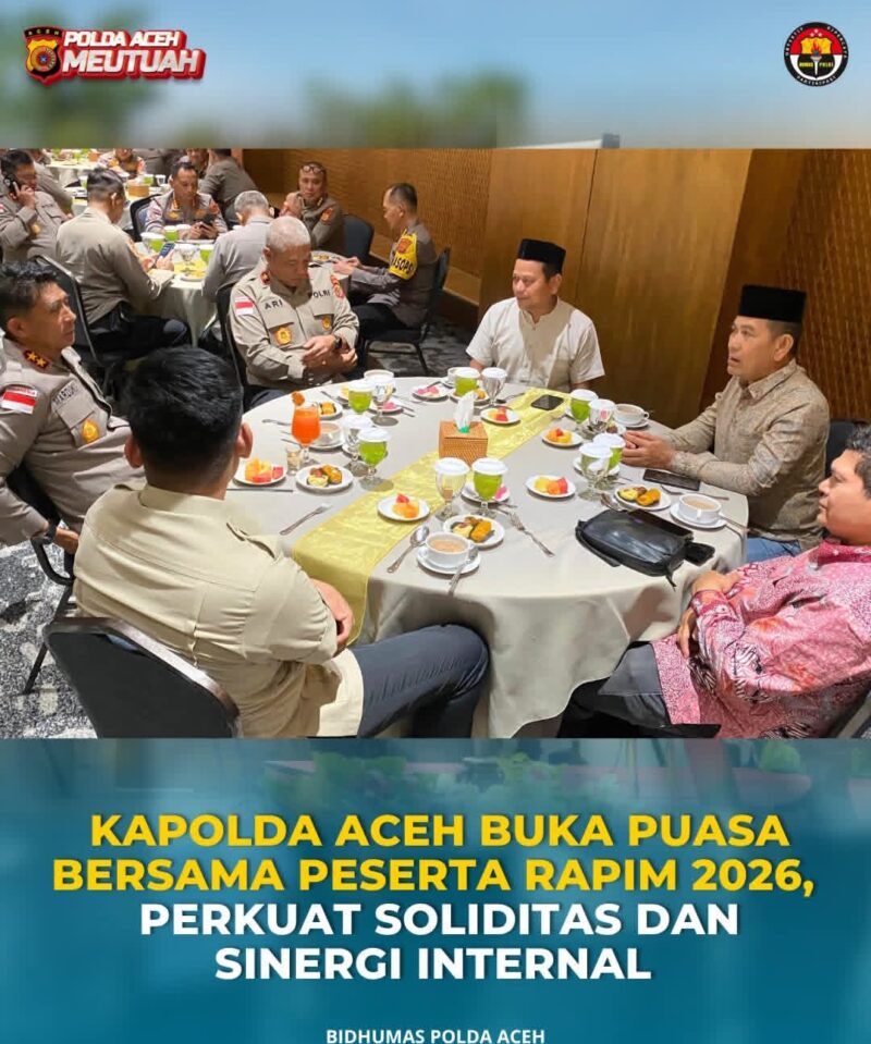 “Buka puasa bersama ini dilaksanakan setelah berakhirnya agenda Rapim hari pertama. Selain sebagai momentum ibadah, kegiatan ini menjadi ruang untuk mempererat kebersamaan dan memperkokoh soliditas di lingkungan Polda Aceh,” ujarnya.