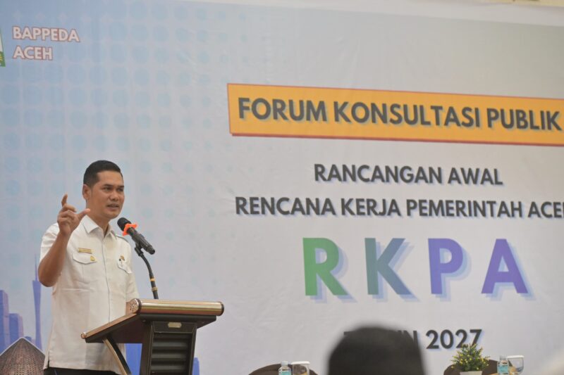BANDA ACEH — Sekretaris Daerah Aceh, M. Nasir, secara resmi membuka Forum Konsultasi Publik terhadap Rancangan Awal Rencana Kerja Pemerintah Aceh (RKPA) Tahun 2027 yang berlangsung di Hotel Grand Nanggroe, Rabu (8/4/2026).