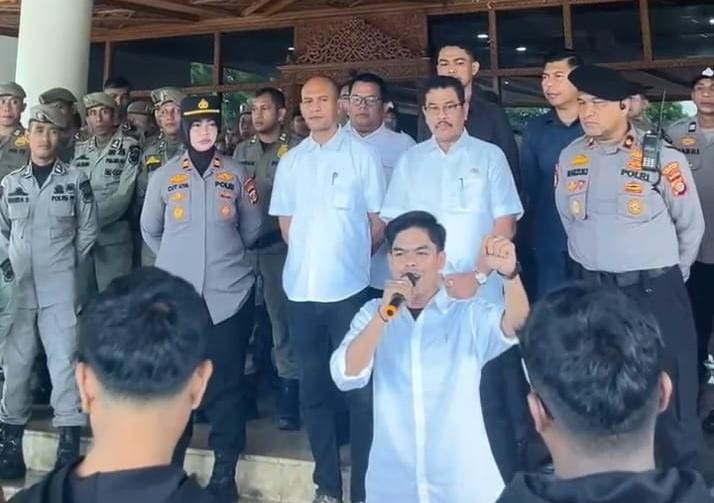 DEMO KANTOR GUBERNUR – Puluhan massa Pemerhati Lingkungan Budaya dan Sosial (PERLIBAS) Gayo bersama elemen masyarakat Gayo melakukan aksi demonstrasi di kantor Gubernur Aceh, Rabu (15/10/2025).